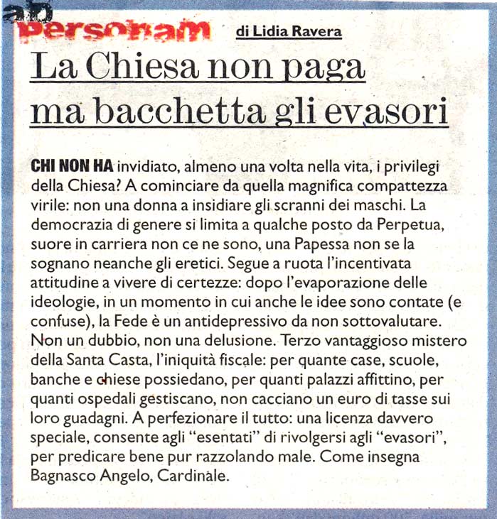 Bagnasco si inventa nuovi fedeli e riceve soldi